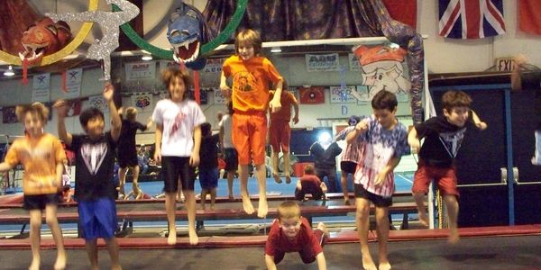 (Student / Teacher Ratio 1:6) The Boys Kinder class is FUN for Boys and rather than damper their endless amounts of energy, we just try to channel it toward development of skills. This class is fast, fun, and furious. The boys learn the basics on all of the Gymnastics apparatus (Vault / Rings / P-Bars...) as well as Trampoline, Ropes, Pits.... Here we follow the boys natural inclination to climb, run, jump, roll... in a safe, constructive, and fun way!